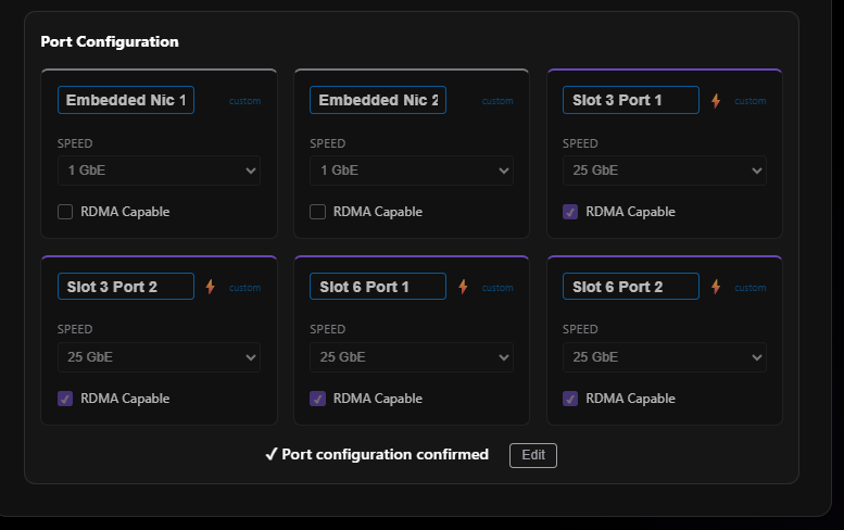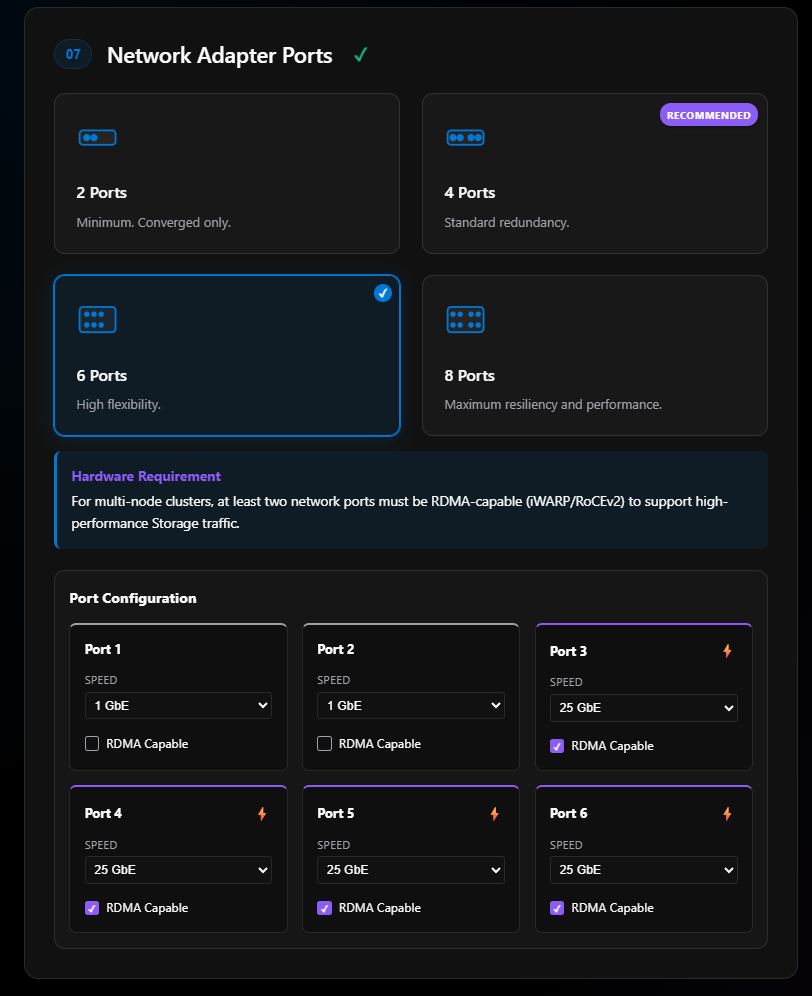 Network Adapters with port mapping — Implemented In Recent Release - Show which port is on which network adapter. This is important for the ARM template and for anyone cabling a cluster.