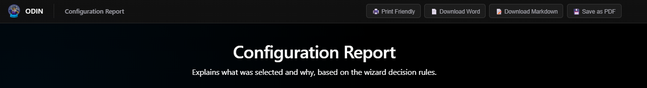 The Designer is the heart of Odin. It walks you through 20 decision points, validates your choices against Microsoft’s requirements, and generates documentation and deployment artifacts. For anyone learning Azure Local or validating a design, this is genuinely valuable.